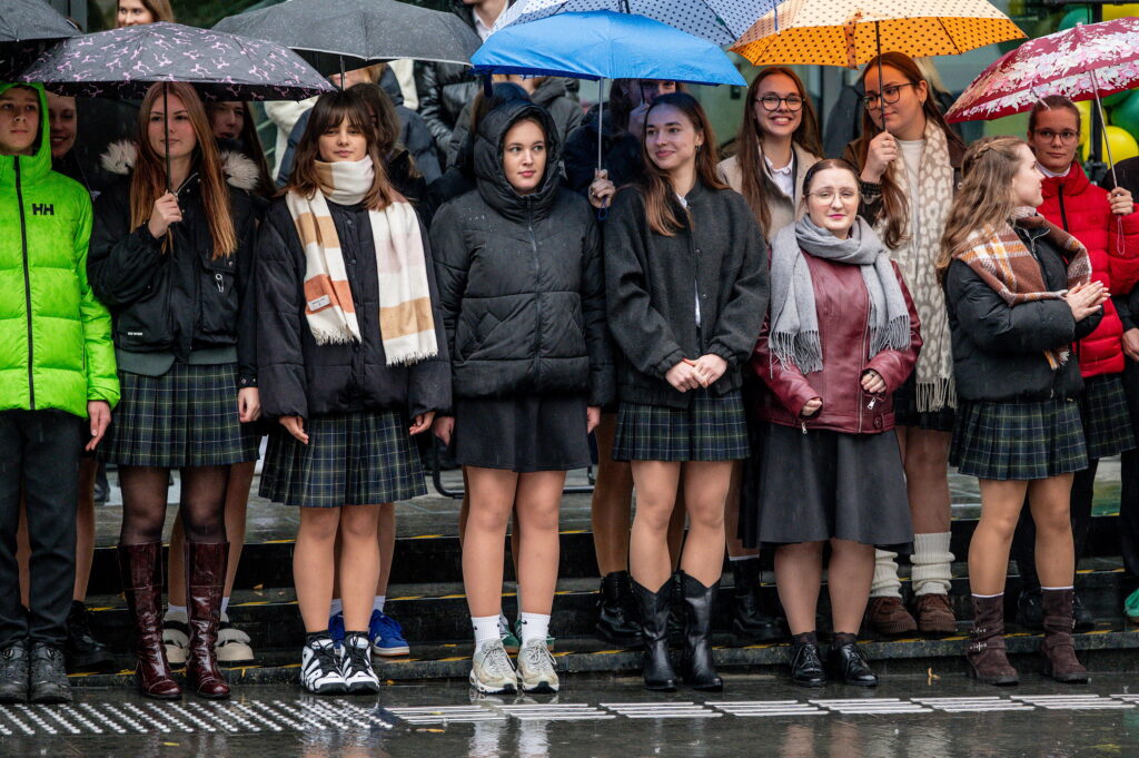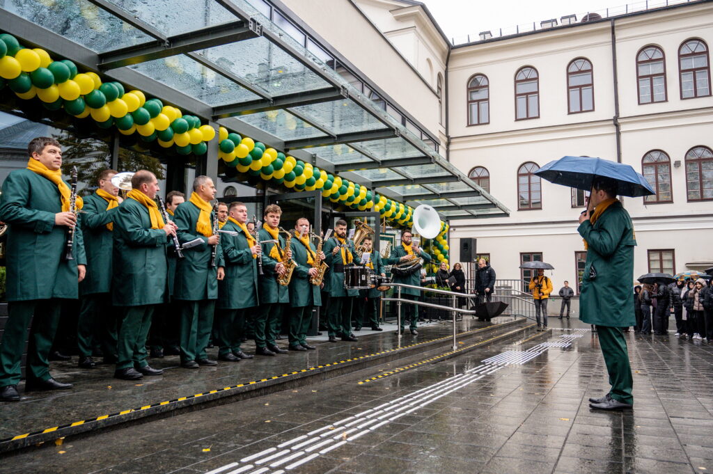 Susirinkusiems muzikinius pasirodymus dovanojo Kauno pučiamųjų instrumentų orkestras „Ąžuolynas“, o naująją sporto salę pašventinęs vyskupas augziliaras Saulius Bužauskas moksleiviams linkėjo ugdyti bendrystę, kantrybę, nuolankumą ir ištvermę: „Visus sunkumus įveikite ne tik sporte, bet ir gyvenime.“