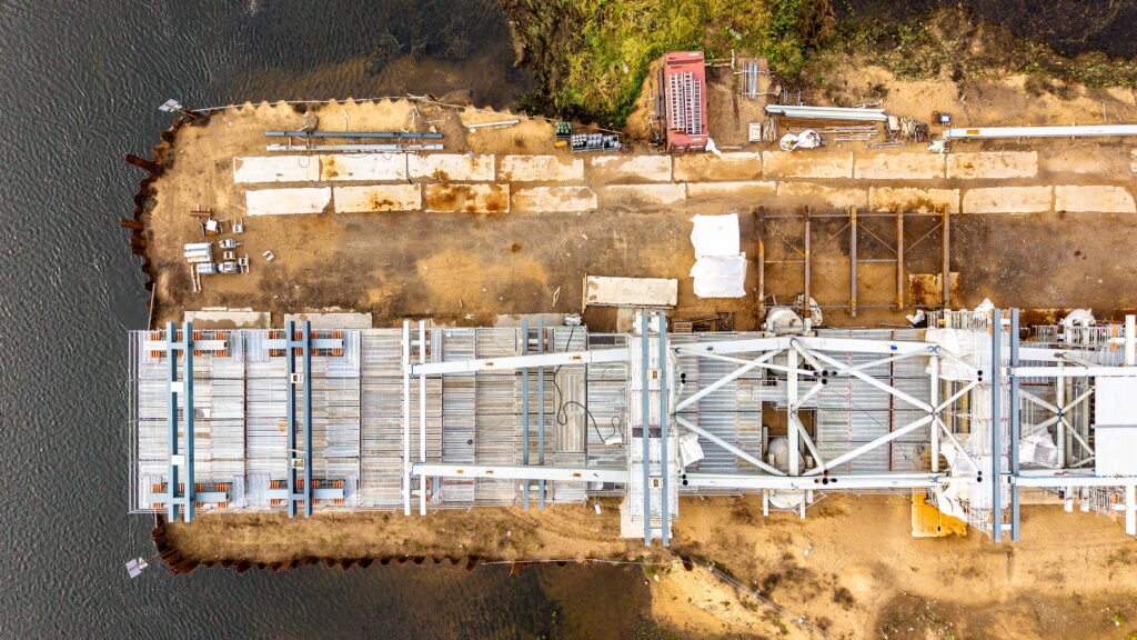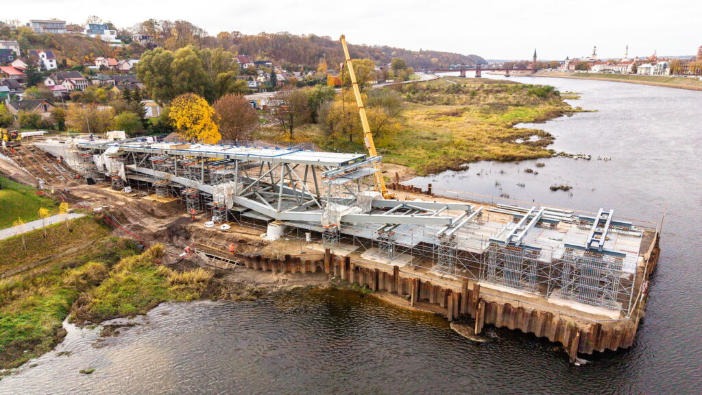 Statybvietėje įrengtos spraustasienės bei poliai, baigti tarpinių bei krantinių atramų betonavimo darbai. Lygiagrečiai sumontuoti tilto atraminiai guoliai bei deformaciniai pjūviai, išbetonuotos pereinamosios plokštės.