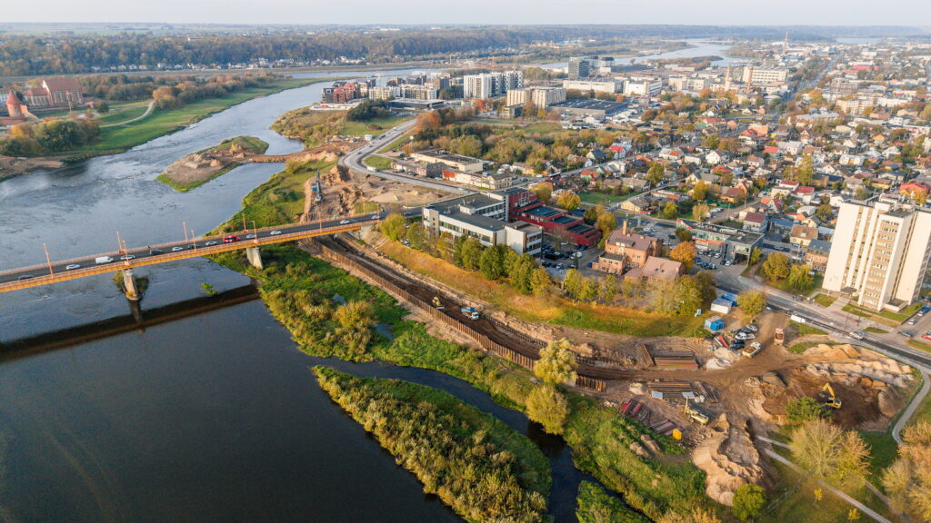 Šiemet įpusėjo ir didžiausias miesto projektas – Santakos tilto statyba tarp Brastos ir Užnemunės gatvių. 23,2 m plotyje išsiteks 4 eismo juostos ir pėsčiųjų bei dviračių eismui skirtos zonos.