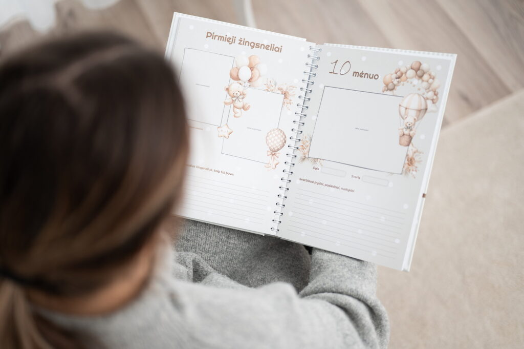 Jį papildo atnaujintas vaiko priežiūros vadovas su naudingais patarimais ir  jaukaus dizaino prisiminimų knygelė-albumas „Mano pirmasis albumas“, skirta svarbiausioms pirmųjų metų akimirkoms įamžinti.
