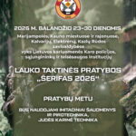 Balandžio 23–30 d. Lietuvos kariuomenės Karo policija Marijampolės ir Kauno miestuose bei rajonuose, Kalvarijos, Elektrėnų, Kazlų Rūdos savivaldybėse organizuos tarptautines lauko taktines pratybas „Šerifas 2026“. Jose dalyvaus ir profesinius įgūdžius tobulins Lietuvos kariuomenės Karo policijos, sąjungininkų ir teisėsaugos institucijų padaliniai. Kariai bus ginkluoti, bus naudojami imitaciniai šaudmenys bei pirotechnika, keliuose judės karinė technika.