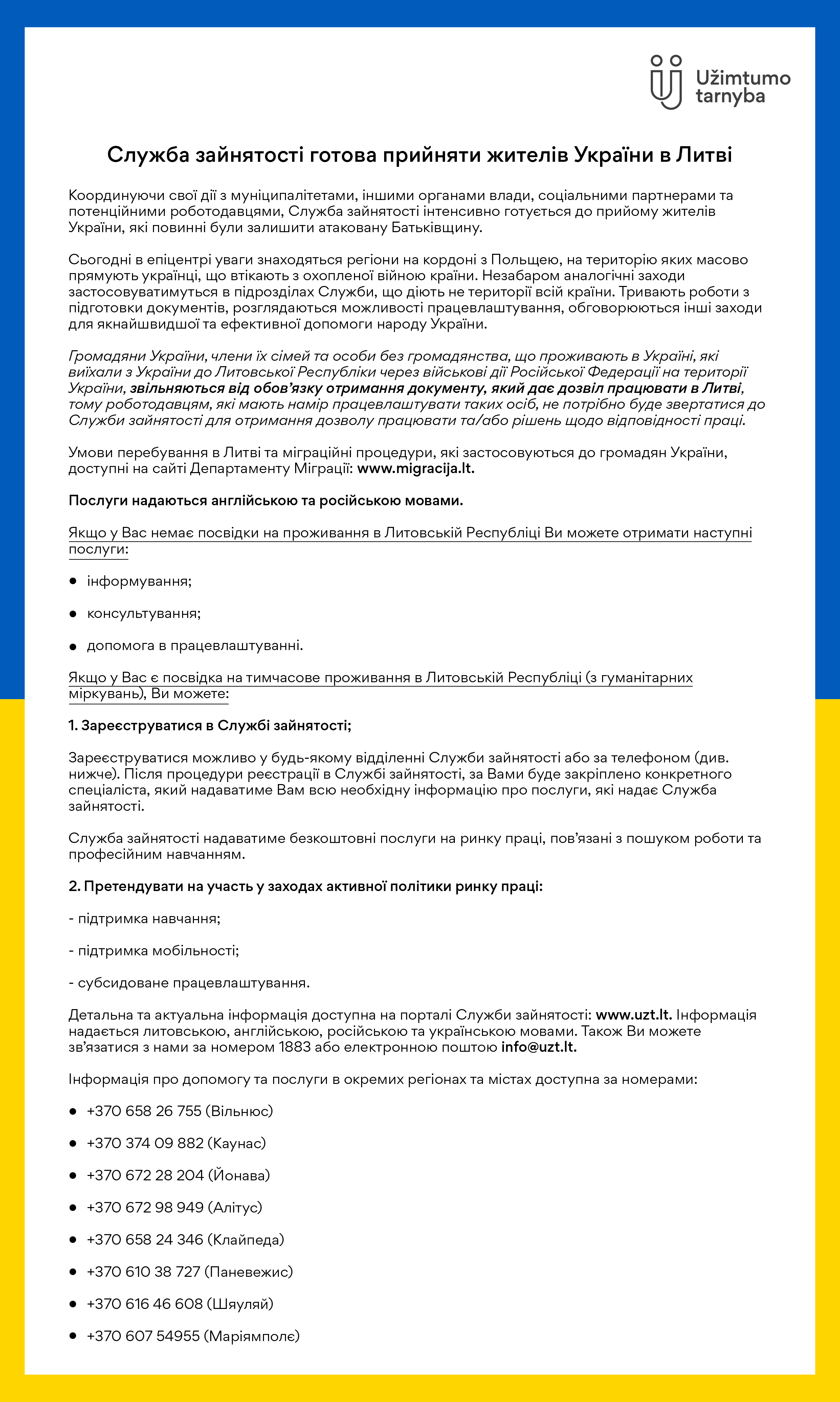 Atmintinė Ukrainos pabėgėliams / Меморандум для Yкраїнських біженців