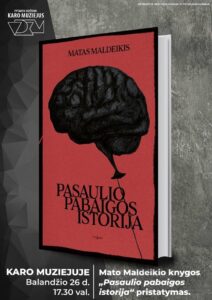 Vytauto Didžiojo karo muziejus informuoja, kad balandžio 26-ąją 17.30 val. Vytauto Didžiojo karo muziejuje vyks politiko, buvusio Seimo nuolatinio atstovo Europos Sąjungoje, LR Seimo nario Mato Maldeikio debiutinės knygos „Pasaulio pabaigos istorija“ pristatymas. Pokalbio metu autorius apžvelgs svarbiausius dabartinės pasaulio tvarkos principus, kurie aprašomi knygoje, pateiks galimus ateities scenarijus, pokalbio metu taip pat palies dabartinius įvykius Europoje bei Ukrainoje.