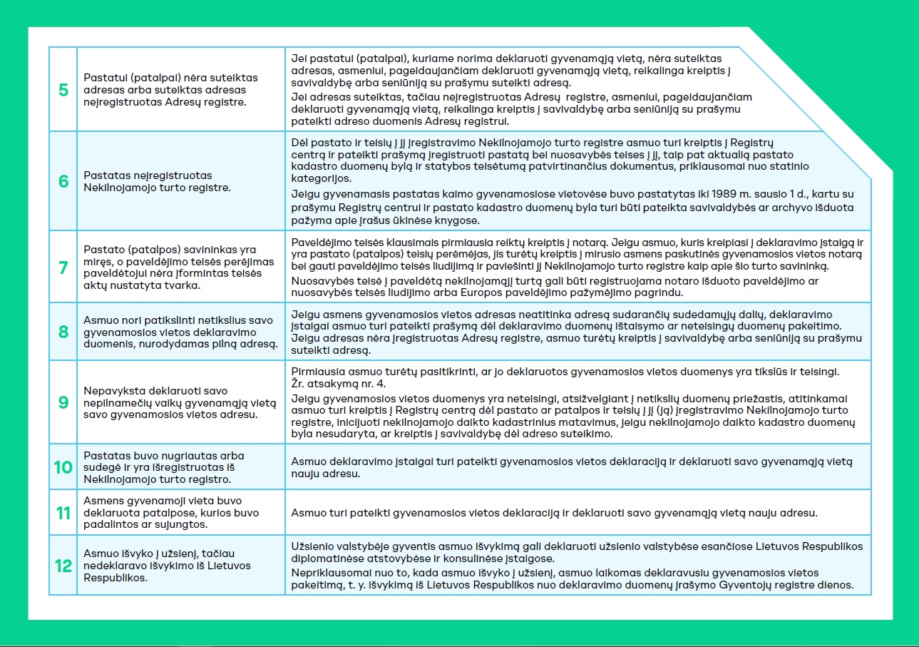 Deklaruotos gyvenamosios vietos adresus savo veikloje naudoja Lietuvos paštas, pagalbos tarnybos ir viešos institucijos. Jeigu adresas netikslus, galite susidurti su šiais nesklandumais: