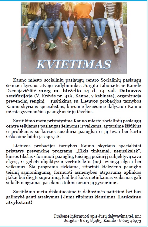KVIETIMAS Į PREVENCINĮ RENGINĮ-SUSITIKIMĄ DAINAVOS SENIŪNIJOJE BIRŽELIO 14 D. 14 00 VAL.