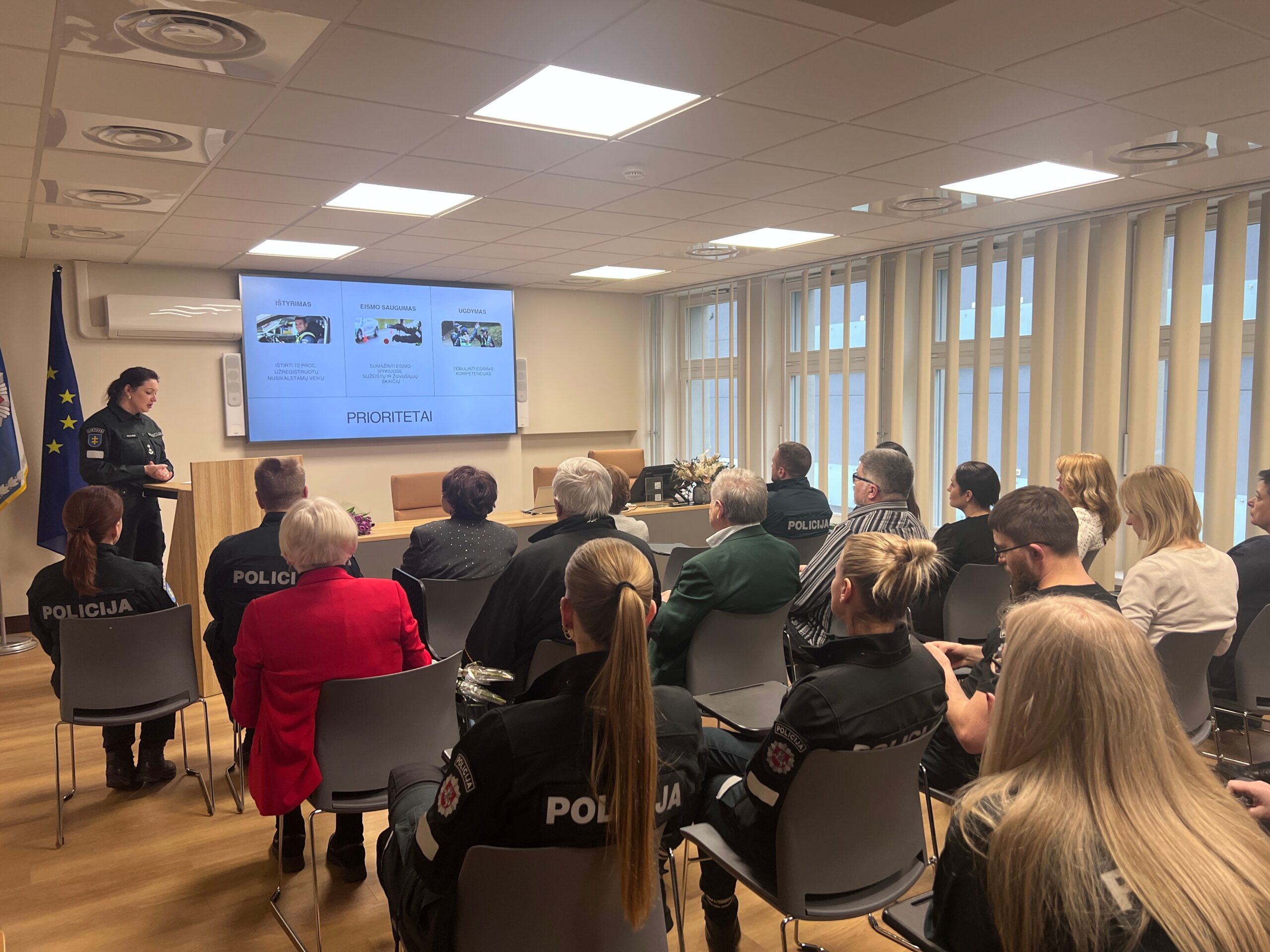 Baigus 2023 metų veiklos pristatymo, Kauno apskr. vyriausiojo policijos komisariato viršininko pavaduotojas Giedrius Klimavičius, susirinkusiems pravedė ekskursiją po rekonstrukcijos atnaujintą Kauno apskrities vyriausiojo policijos komisariato pastatą- buvo įdomu.